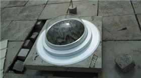 安裝的時(shí)候咱們?nèi)滩蛔〗o采光罩來(lái)了個(gè)特寫,大家都知道香港正能量的采光罩是由特警盾牌的類似PC材料經(jīng)由一系列特殊處理制造而成,在塵土飛揚(yáng)的施工現(xiàn)場(chǎng),采光罩依舊光潔可鑒,一絲灰塵都沒(méi)有哦!后期更是免人工維護(hù),風(fēng)吹雨淋即可自凈!