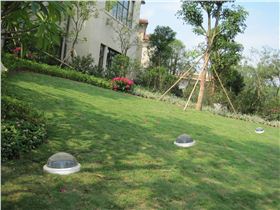完美地與草坪融為一體的采光罩,既堅固又兼有裝飾作用。