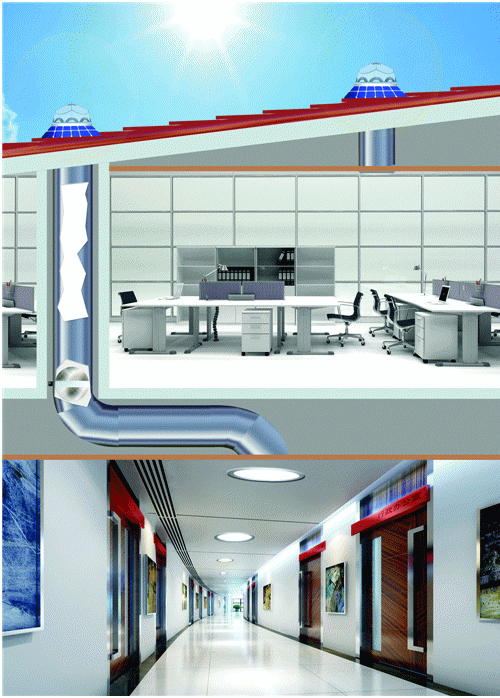 導(dǎo)光管采光系統(tǒng)無能耗,一次性投資,無需維護(hù),節(jié)約能源,創(chuàng)造效益,同時(shí)減少了大量二氧化碳、二氧化硫和其他污染物的排放。