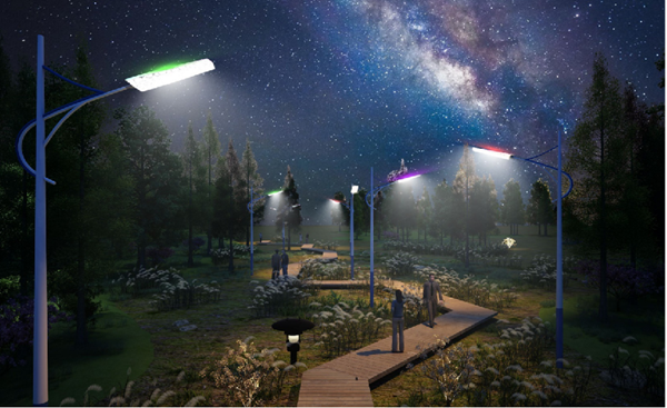 光能路燈白天發(fā)電+夜間照明效果(四川樂山零碳公園)